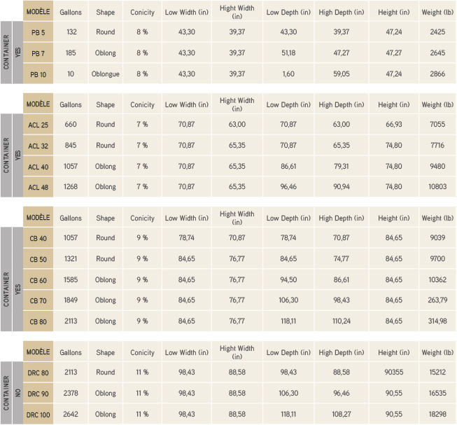These truncated concrete tanks are defined by their rate of conicity between 7% and 11%. These vessels possess the excellent thermal inertia characteristics of all concrete tanks, allowing for a slow and controlled ferment. The inspiration for the style of tank comes from traditional oak fermenters, but adapted and updated in their form to accommodate the needs of fermentation in concrete.
