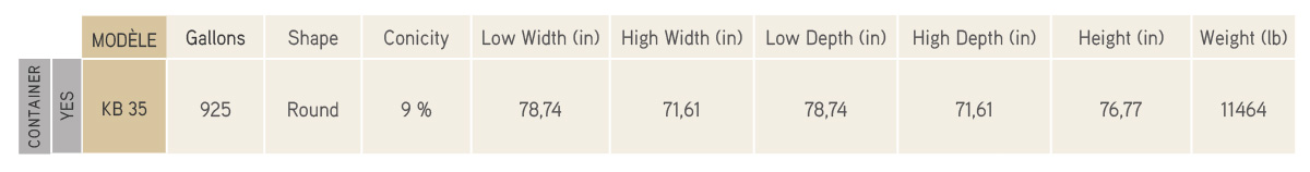 The truncated vinification tank has a rounded concave bottom intended for a slow and gentle aging of your wine. The concrete will contribute a slow micro-oxidation, and the tank’s shape allows for easy draining off and digging out once the fermentation has completed.